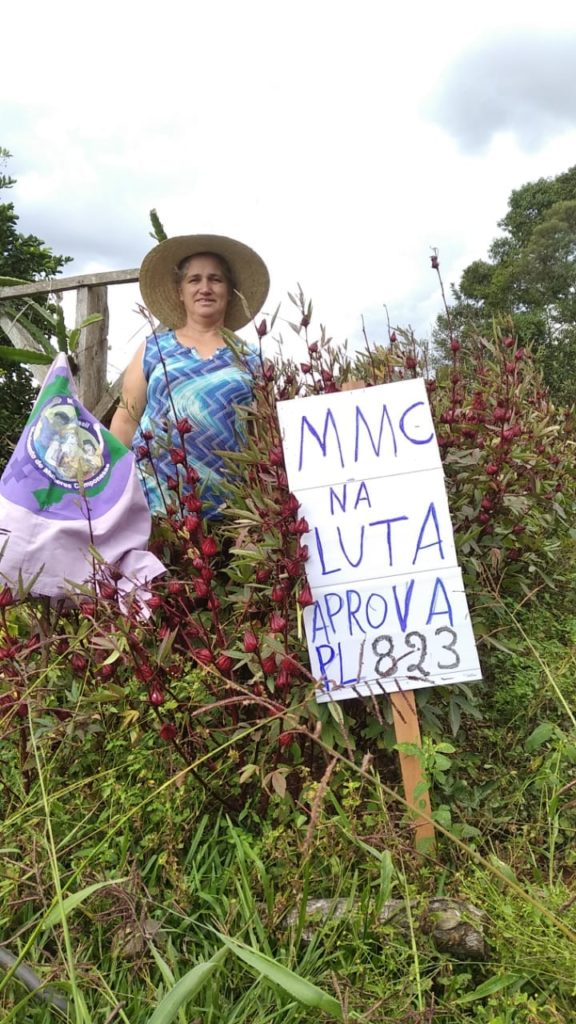 Em outra publicação do Movimento de Mulheres Camponesas, Geneci Ribeiro dos Santos fala sobre as dificuldades enfrentadas pelas agricultoras catarinenses, como a falta de chuvas, a seca e a estiagem no Oeste de Santa Catarina, e faz um apelo em defesa da aprovação do PL 823.  “Precisamos de auxílio emergencial. Precisamos de mais reconhecimento, valorização e maior destinação de recursos públicos para podermos continuar com nossa missão, com nosso trabalho, que é de produzir alimentos, para que a população do campo e da cidade tenham acesso a alimentos diversificados, saudáveis e nutritivos. Por isso, nós, mulheres camponesas de Santa Catarina, exigimos que o PL 823 seja aprovado, com urgência, para o Brasil não passar fome”, reivindica a camponesa.