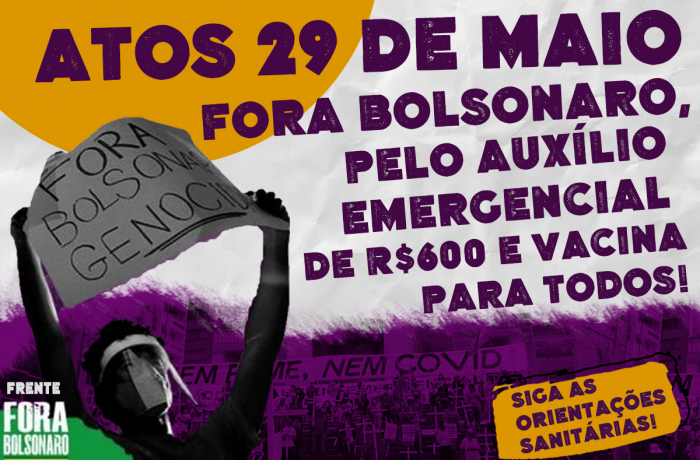 Ao menos 15 municípios catarinenses terão atos de rua neste sábado, dia 29 de maio, ampliando a mobilização nacional pelo Fora Bolsonaro, em defesa da